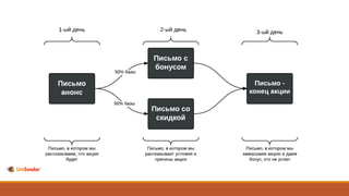 Документ обсуждает методы увеличения open rate писем до 60%, акцентируя внимание на важности заголовков и персонализации. Выводы показывают, что использование 'магических' слов и подстановок повышает открываемость. Рекомендуется внедрять триггерные письма, персонализацию, сегментацию и сплит-тесты для максимизации эффективности рассылок.