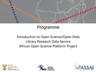 - An overview of the African Open Science Platform project which aims to promote open science on the continent.