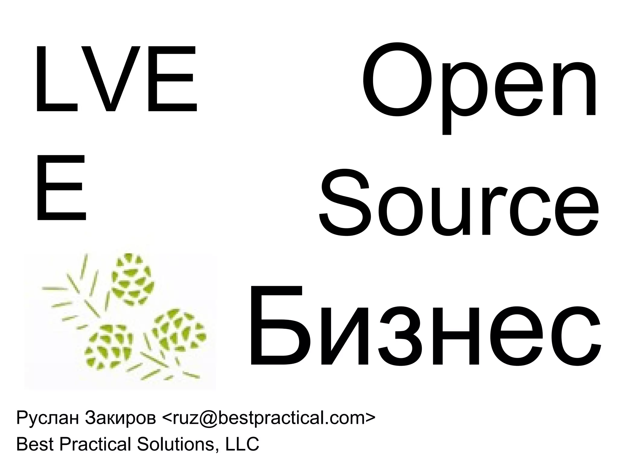 Документ описывает бизнес-модель компании Best Practical Solutions, которая разрабатывает и предоставляет open source программное обеспечение, включая продукт Request Tracker для обработки заявок. Акцентируется внимание на сложности удовлетворения всех потребностей клиентов и возможности настройки продуктов под разные бизнес-структуры. Также упоминаются плюсы и минусы использования open source, включая отсутствие обязательств и зависимость от сообщества.