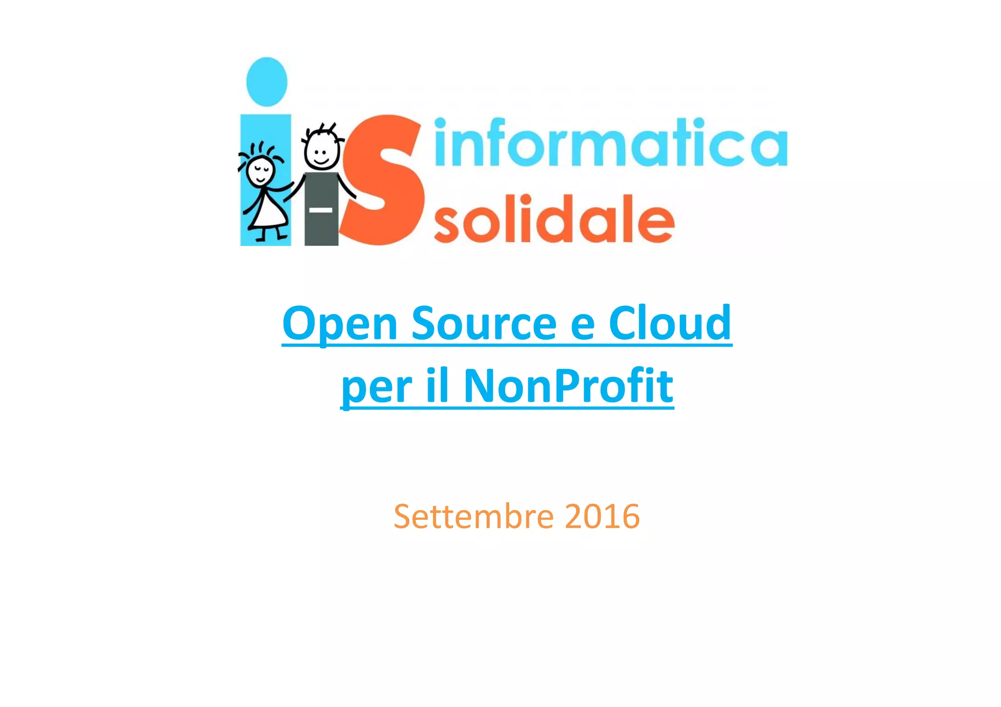 Il documento descrive l'importanza dell'open source e del cloud computing per le organizzazioni nonprofit, evidenziando come queste tecnologie possono migliorare l'efficienza e ridurre i costi. Informatica Solidale, un'associazione che supporta progetti sociali, promuove il software open source e i servizi cloud come soluzioni per affrontare il divario digitale nelle realtà nonprofit. Vengono forniti anche suggerimenti per la scelta di provider cloud e delle applicazioni open source, con attenzione agli aspetti di sicurezza e qualità del supporto.