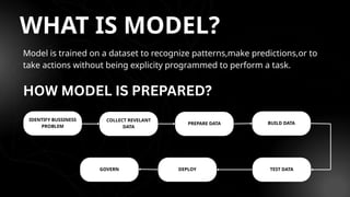 Model istrained on a dataset to recognize patterns,make predictions,or to