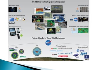 Jim Gray was a software genius at Microsoft Research who was interested in databases and making science more productive. He received the Turing Award and took his sailboat out in 2007 but never returned. He wanted to see a digital survey of the sky created and helped connect World Wind to sky survey data, allowing anyone to explore the known universe. World Wind provides an API that allows any application to visualize and interact with spatial data, serving as a reusable platform for others to build upon.