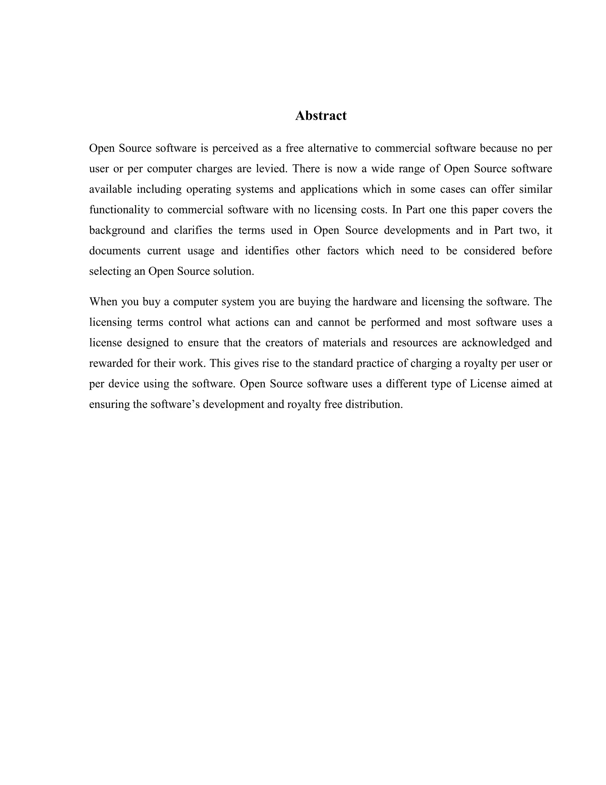 The document provides an introduction to the open source operating system Linux. It discusses some of the key features of Linux, including that it is faster and more reliable than other operating systems like Windows. It notes that Linux is very robust as it is developed by many contributors online. Some specific advantages highlighted are that Linux has excellent scalability, is fully 32-bit and 64-bit, and is more secure than Windows due to not being susceptible to viruses. Examples of where Linux is commonly used like web servers, file servers, and databases are also briefly mentioned.