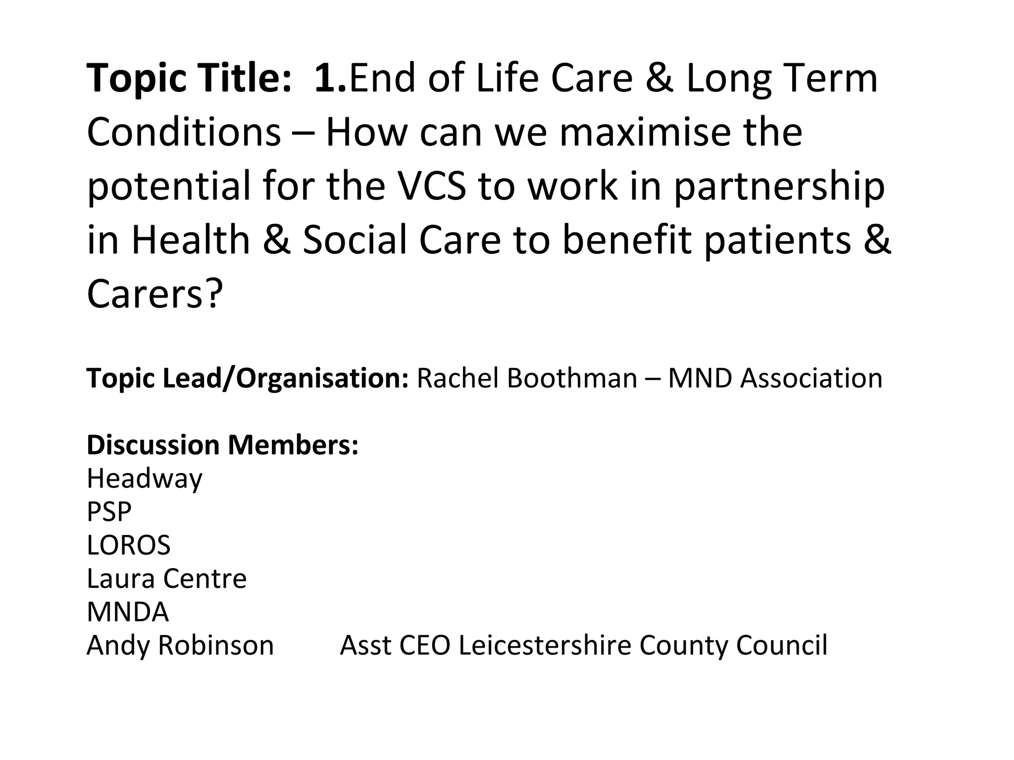 The document contains notes from an emergency budget action planning meeting discussing various topics related to health and social care, grants, youth and service user involvement, community development, rural services, promoting local services, influencing funding reviews, personalization and direct payments, and the role of small to medium VCS organizations in delivering public services. Actions were identified for many topics around improving partnership, communication, involvement, and representation across sectors.