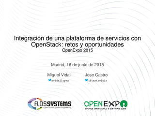 La integración de servicios con OpenStack ofrece retos y oportunidades significativas, destacando su naturaleza como un marco de infraestructuras como servicio (IaaS) que permite flexibilidad y control sobre la infraestructura. Flossystems, como empresa especializada, utiliza OpenStack para mantener una infraestructura propia y responder a necesidades específicas de sus clientes, al tiempo que evita el vendor lock-in. No obstante, la implementación de OpenStack requiere esfuerzos significativos en formación y diseño debido a su complejidad inherente.