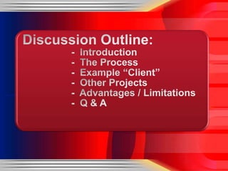 This document describes a collaboration between mechanical engineering and nursing students at the University of Detroit Mercy to develop assistive devices for physically disabled clients. Students work together on capstone design projects, applying their disciplines to improve clients' mobility and independence. The process involves understanding clients' needs, designing prototypes, testing, and delivery. Benefits include teaching collaboration skills and improving clients' lives. Limitations include different student expectations and scheduling meetings across disciplines. Overall, the interdisciplinary approach provides positive learning and community impacts.