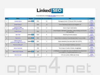 SEM – marketingw wyszukiwarkach Doświadczenie z jednej z najlepszych agencji SEM w Europie: NetBooster UK Członkostwo w LinkedSEO – ok. 30 Polaków Referencje: Vitalise, DCC, AJElectronics Sprawdź pozycjonowanie OPEN4net na frazę ‘e-marketing farmaceutyczny’