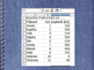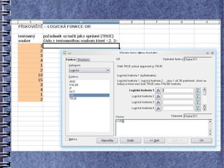 ● Pro zkoušení funkčnosti vzorců, vlastností funkcí