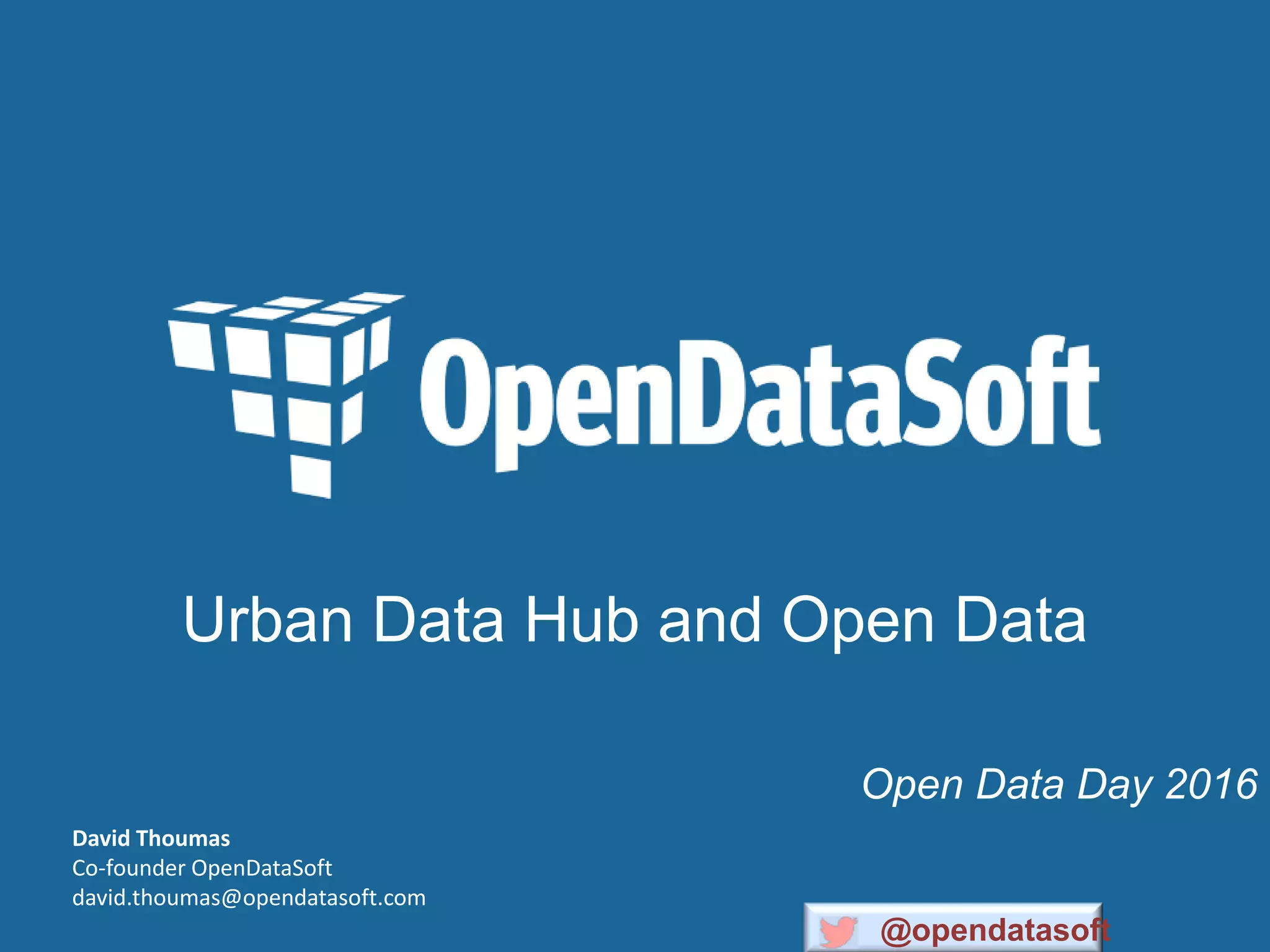 The document discusses OpenDataSoft, a company that provides an urban data hub and open data platform. The platform is designed for data sharing and reuse through APIs. It allows organizations to publish, discover, access and analyze data. Over 70 global leaders use the platform to make their data available. The platform also supports applications, monetization, data preparation and management features.