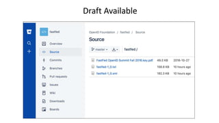 The Fast Federation Working Group aims to increase adoption of federated identity by making it easier to configure single sign-on between applications. It proposes new metadata files and user experience flows to simplify the registration process for administrators. The goals are to solve problems like attribute mapping and endpoint discovery by pushing complexity onto identity providers and advocating for administrators through standards that reduce integration work for service providers.