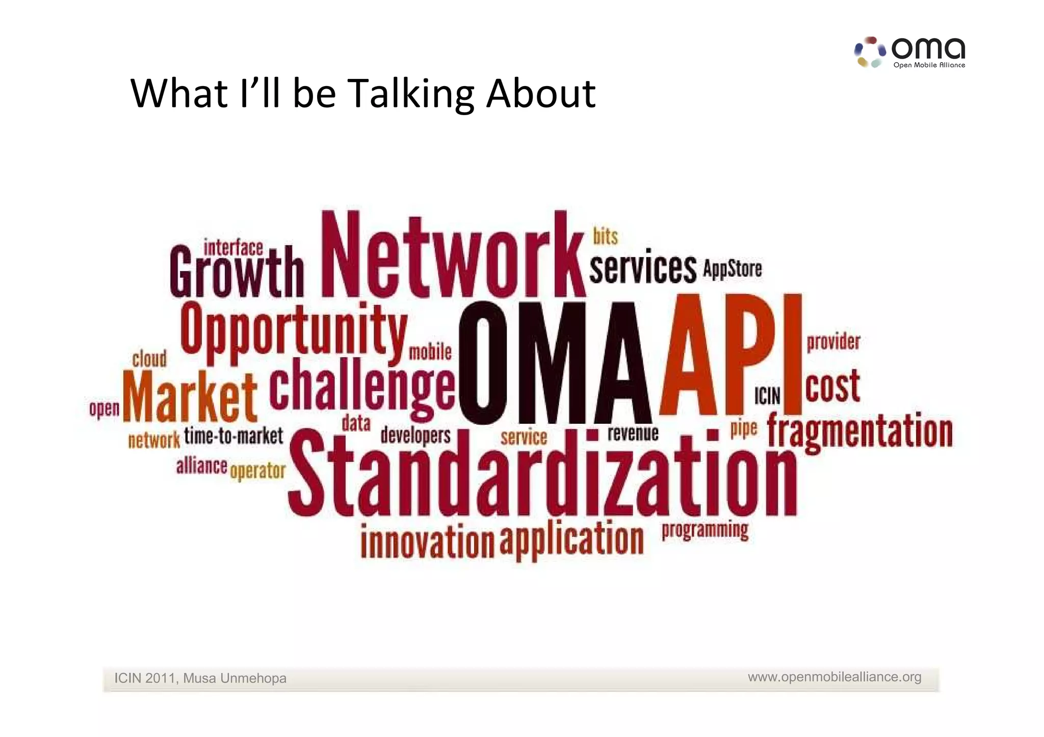 The document discusses the growth potential of the mobile applications market, highlighting that significant standardization through the Open Mobile Alliance (OMA) APIs is essential for developers to access network resources and reach broader subscriber bases. It emphasizes the fragmentation challenge within the current application development ecosystem, where both operators and developers have limited reach, thus preventing scalable growth. Standardizing APIs is presented as a solution to reduce development costs, increase deployment efficiency, and foster a diverse range of applications and services.