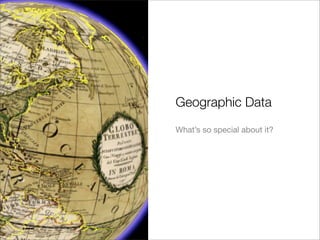 This document discusses the benefits of opening up geographic data to fuel innovation. It notes that while maps are useful, the underlying data is even more valuable for tasks like routing, themed cartography, and addressing global issues. However, the data has traditionally been restricted by specialist industry and academia. The document argues that opening the data and using web standards and crowdsourcing allows more people to work with it and develop creative solutions.