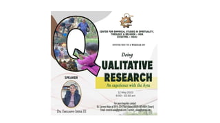 The document is an opening prayer for a webinar or conference. It asks God to send his Holy Spirit to guide those gathered and give them wisdom to understand what will be discussed. It prays that God would deepen comprehension, broaden vision, and ignite passion for research. It also prays that discussions would be charitable, conversations meaningful and fruitful, and that bonds of collegiality would be nurtured among researchers. Finally, it prays that the conference would bring success and growth, especially to indigenous peoples.