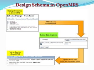 The OpenMRS community works to improve healthcare in developing countries where diseases like AIDS, tuberculosis, and malaria are prevalent. Their mission is to coordinate a global community to create and support open source medical software that can operate in resource-constrained environments. The OpenMRS community is made up of volunteers from different backgrounds working to build a flexible technology platform to support healthcare delivery in challenging areas. Originally created to fix a database for a clinic in Kenya, OpenMRS has grown significantly and is now used in research and clinical settings around the world.