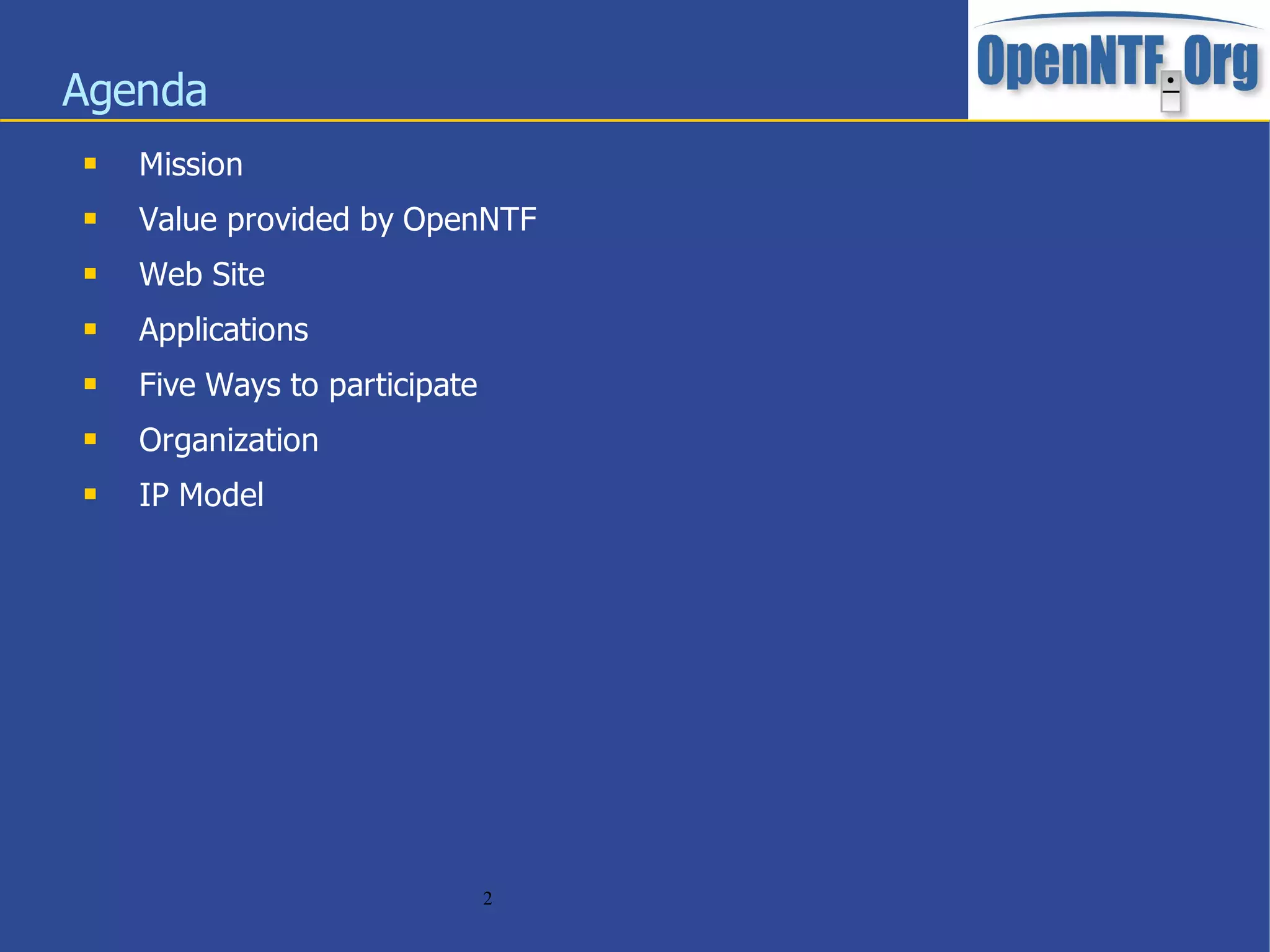 OpenNTF is a global community that collaborates on open source IBM Notes/Domino applications. It provides a website to distribute applications under open source licenses. Members contribute code, provide feedback, help govern the organization, use projects, and more. The organization aims to increase quality applications through this collaboration.