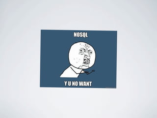 #23 projektowanie aplikacji w oparciu o nosql wymaga zupełnie innego podejścia,\nprojektowanie modelu danych jest dużo trudniejsze, odpytywanie bazy danych jest dużo trudniejsze - nie wszystko da się trzymać w jednym miejscu, nie wiadomo czy będzie potrzebny, premature optimization\n