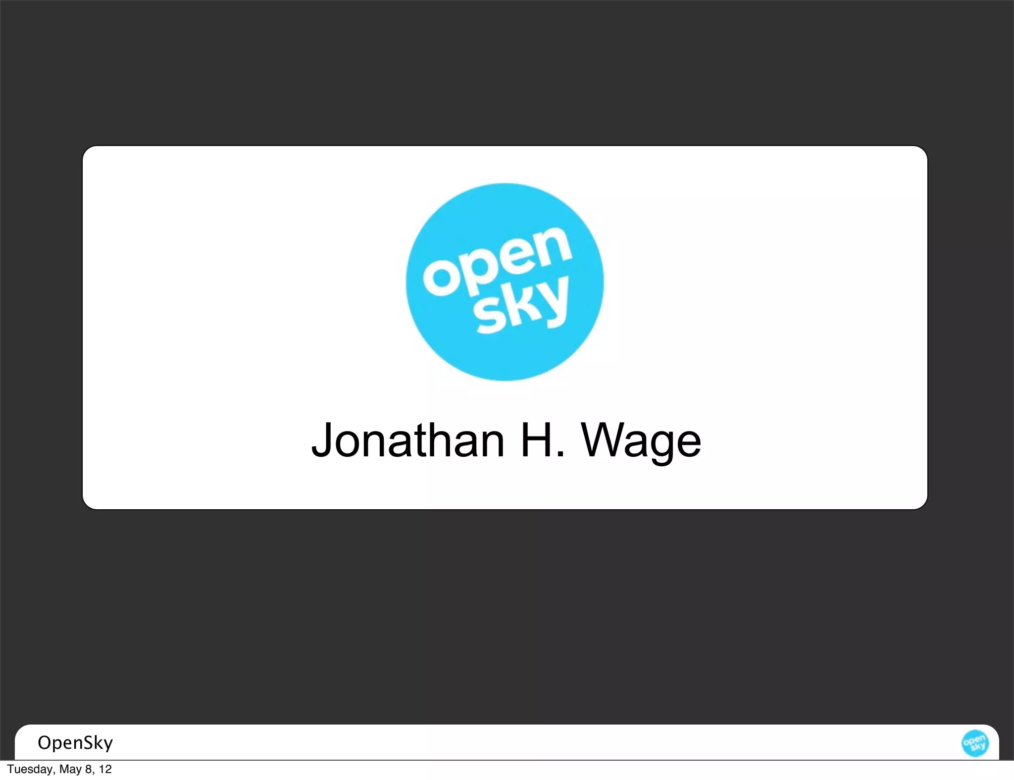 The document provides information about Jonathan Wage and the technology company OpenSky. It discusses OpenSky's business details like revenue, users, and curator partners. It also summarizes OpenSky's technology stack including programming languages, frameworks, databases, and messaging systems used to build their social e-commerce platform.