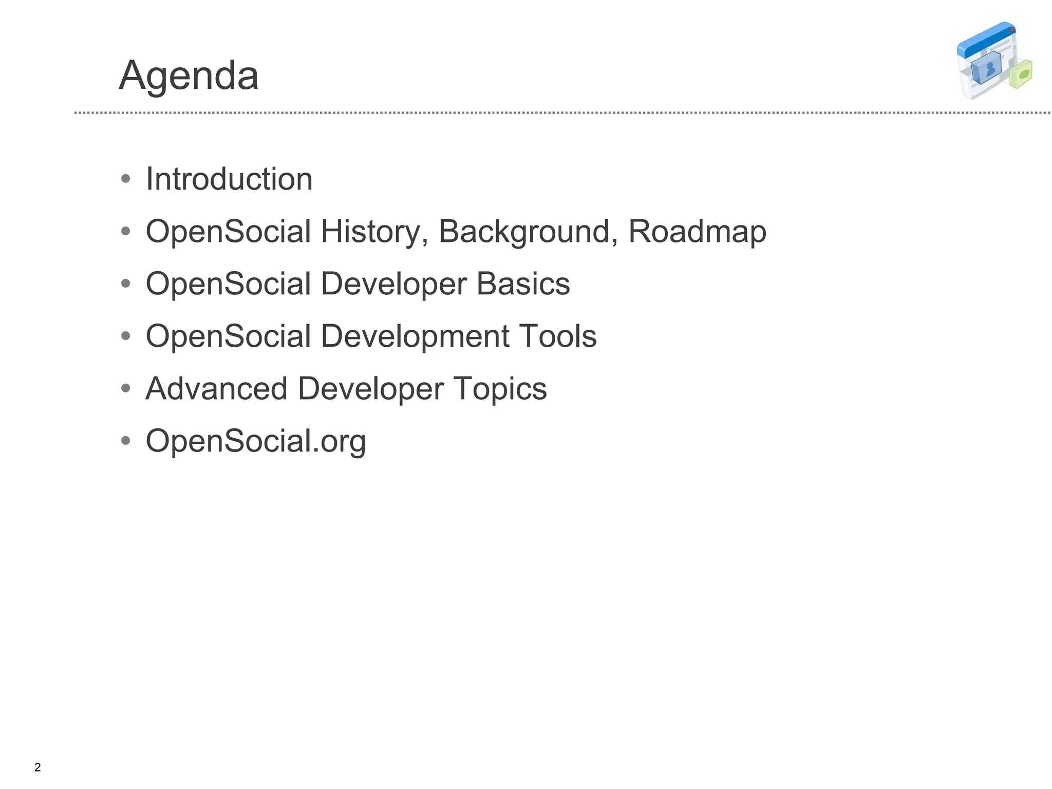The document provides an overview of OpenSocial, a set of APIs for building social applications across various platforms, managed by the OpenSocial Foundation. It includes the evolution of OpenSocial versions, development tools, best practices for performance, and resources for developers. Advanced topics on server-side communication and client libraries for various programming languages are also covered.