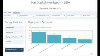 This document summarizes findings from the 2016 OpenStack User Survey. It shows that: