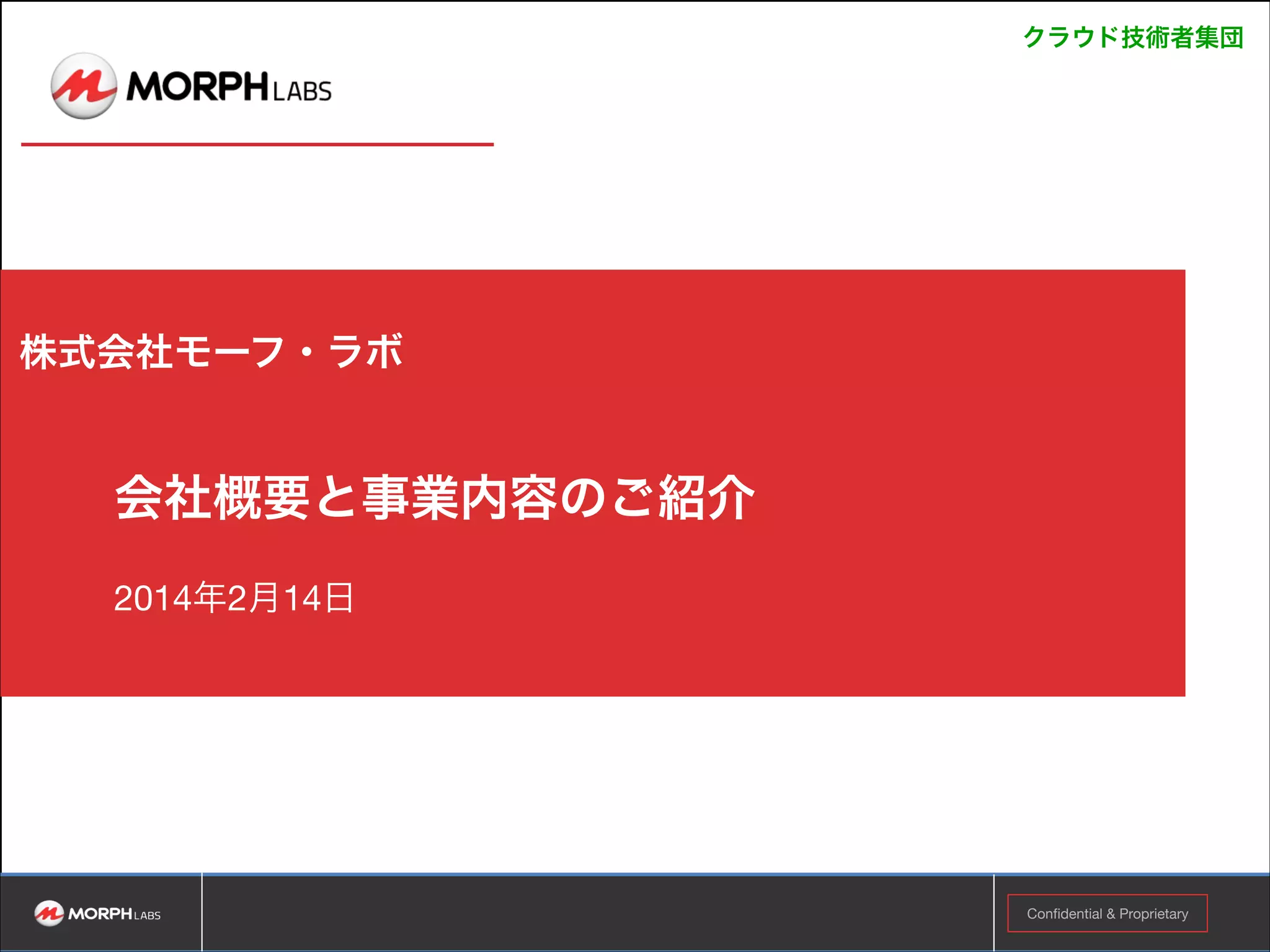 OpenStack Days Tokyo 2014のプレゼンテーション資料です。 モーフ・ラボ = 製品フォーカス(mCloud) = カスタマイズ非対応 アセアン・ラボ = インテグレーション・サービスフォーカス = カスタマイズ対応 これを明確に打ち出すべく、赤=製品事業、青=インテグレーション事業という棲み分けを説明させて頂きました。