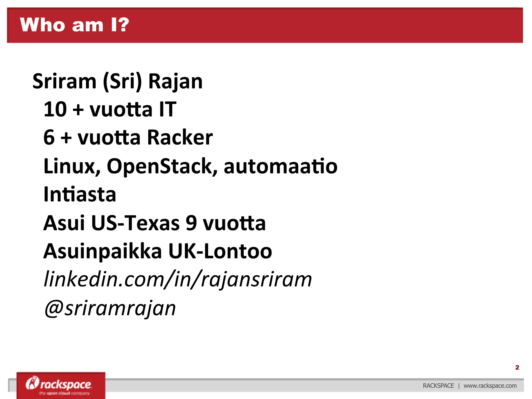 Rackspace helped found OpenStack in 2010 and has contributed significantly to its development. The document discusses OpenStack's history and principles of being open source, with an open design and development process. It outlines Rackspace's involvement over time, including launching its first cloud in 2008. It also summarizes the growing OpenStack community and Rackspace's use of OpenStack projects in its cloud products and private cloud software.
