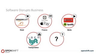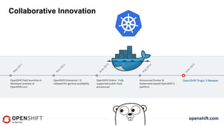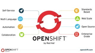 OpenShift Enterprise 3 is the first enterprise-ready platform for web-scale container applications using Docker, Kubernetes, and RHEL 7. OpenShift Dedicated allows for application deployment in the public cloud on dedicated infrastructure managed by Red Hat. The Atomic Enterprise Platform, designed for large-scale container deployments, serves as the foundation for OpenShift Enterprise 3.