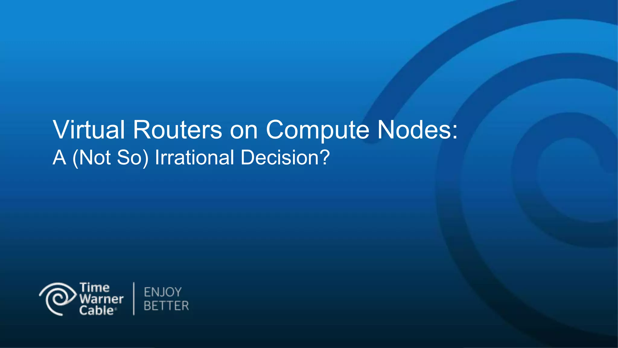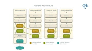 The document discusses the implementation of distributed virtual routers (VR-D) on compute nodes to address network reliability issues in an OpenStack environment. It outlines the architectural decisions, including colocating routers with virtual machines and the scalability of the L3 agent, while highlighting the achieved benefits and operational challenges. The solution has proven effective in production, paving the way for future enhancements such as high availability routers.