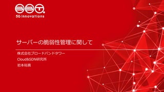サーバーの脆弱性管理に関して(OpenStack + Vuls) - OpenStack最新情報セミナー(2016年12月) 講師:岩本 裕真(BBT) アジェンダ: - 皆さんはサーバの脆弱性管理をどのように行っていますか? - demo