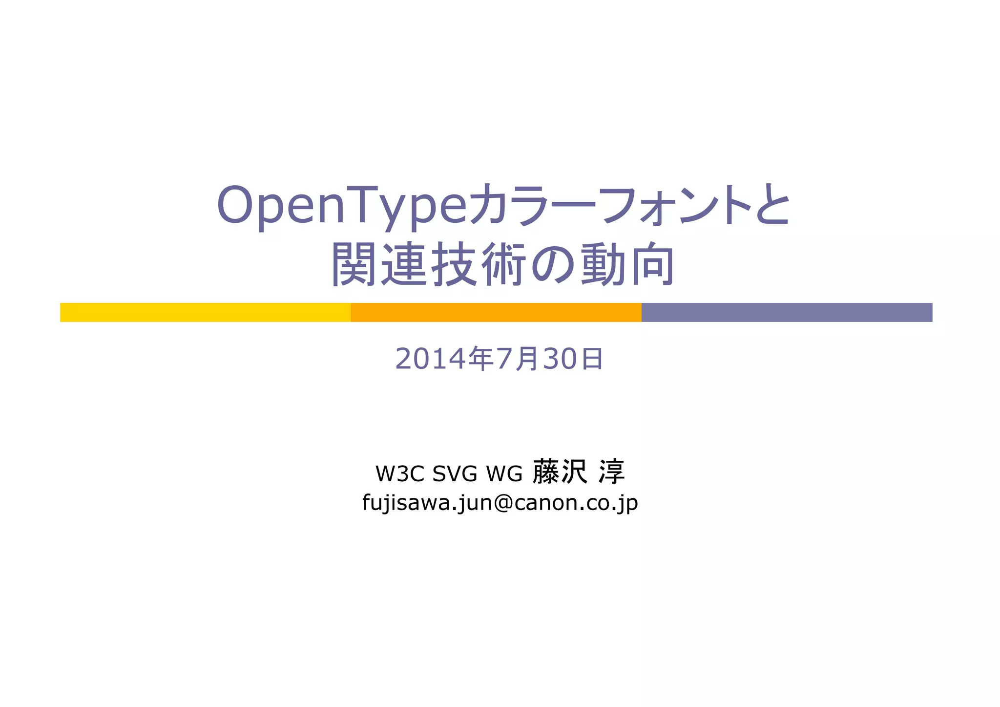 OpenTypeカラーフォントと 関連技術の動向 2014年7月30日 W3C SVG WG