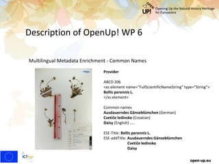 1. The development of a common names provider that can enrich metadata with vernacular names for plants and animals in multiple languages.