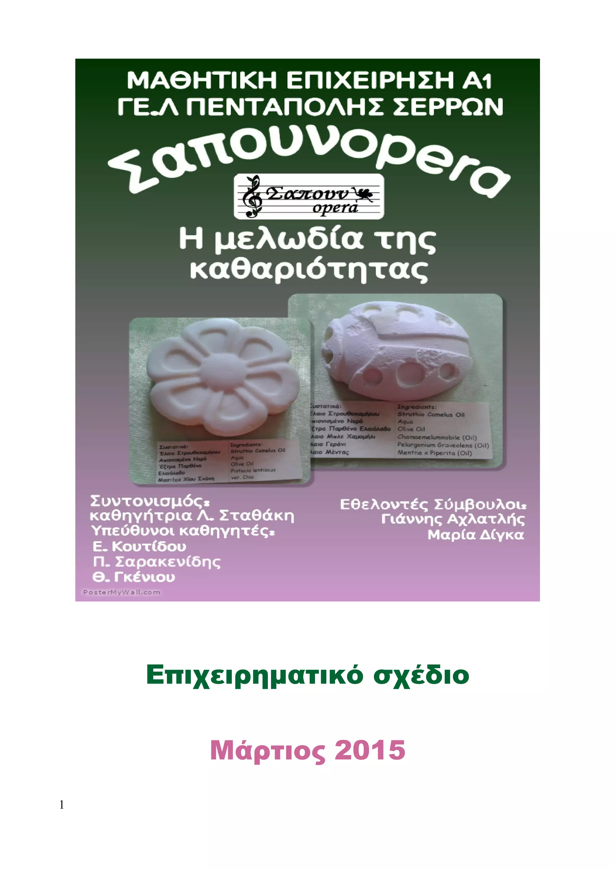 1) Της Μαθητικής Επιχείρησης με την επωνυμία «Σαπουνopera» που