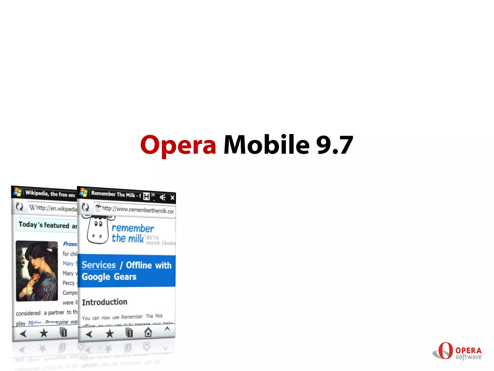 Opera Mobile 9.7 provides a unified web experience across devices with hardware accelerated rendering. It includes the Opera Turbo feature to compress web pages and speed up loading times by up to 80%. Opera Mobile 9.7 also supports widgets, which are small applications that can be developed for desktop browsers and deployed on mobile devices to replace native apps. There are over 1 billion mobile phones in use worldwide that could support widgets.