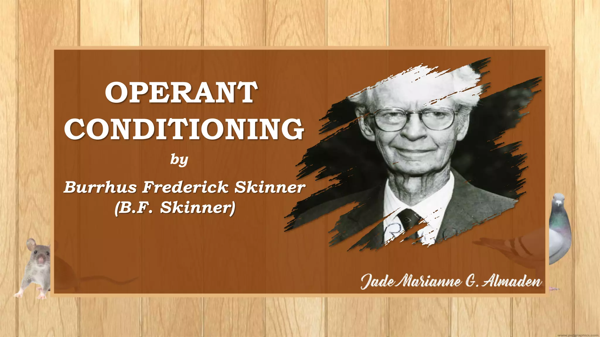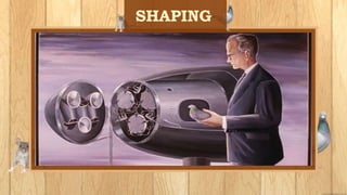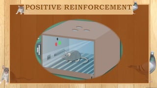 The document discusses operant conditioning, which is a method of learning developed by psychologists Edward Thorndike and B.F. Skinner. Operant conditioning operates on the principle that behaviors followed by pleasant consequences are more likely to be repeated, while behaviors followed by unpleasant consequences are less likely to be repeated. Skinner developed various techniques for operant conditioning through his experiments using pigeon and rats, including his invention of the Skinner Box. The document also defines key concepts in operant conditioning like reinforcement, punishment, positive and negative reinforcement, primary and secondary reinforcement, and different reinforcement schedules.