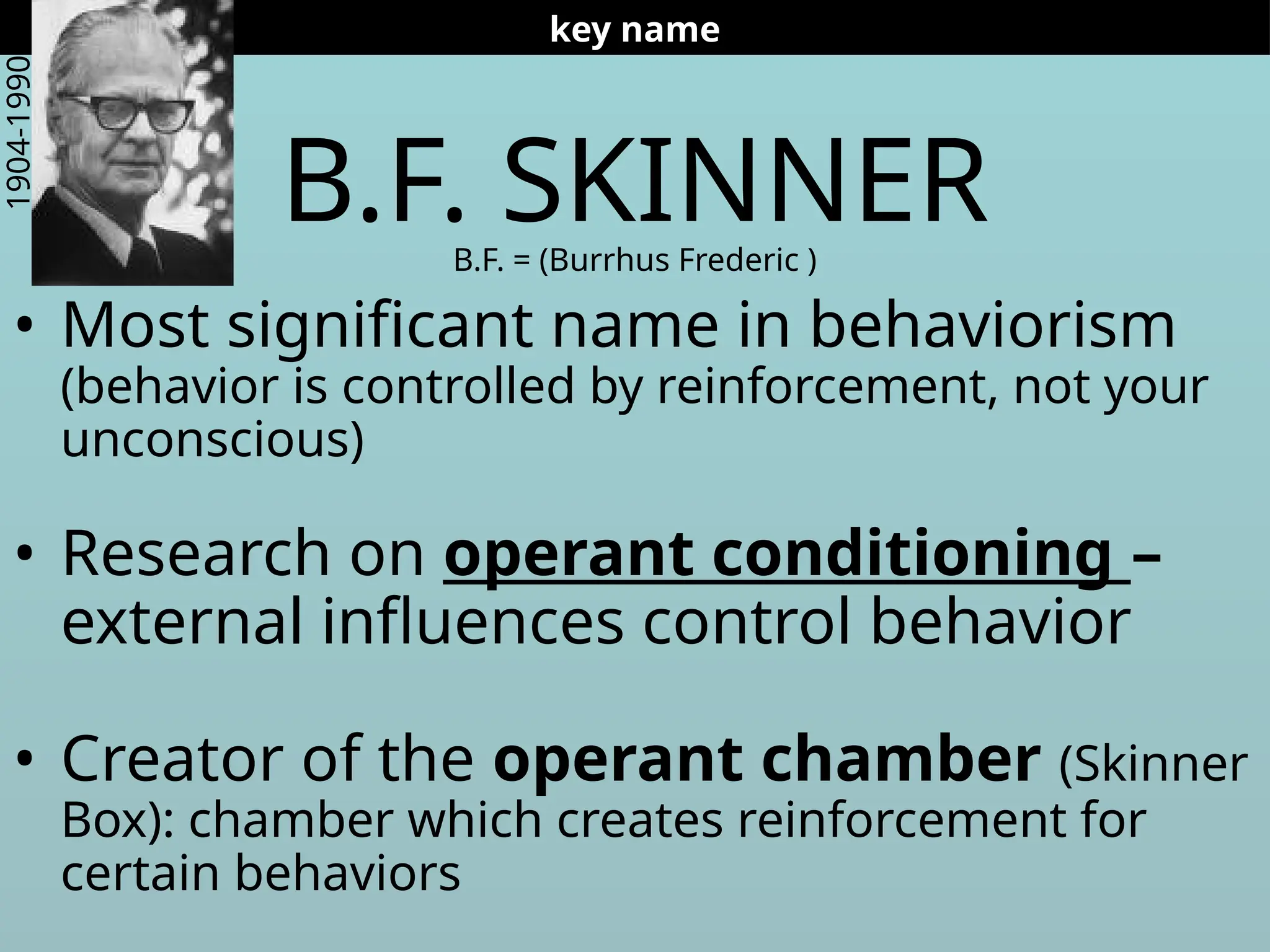 B.F. Skinner, a prominent figure in behaviorism, emphasized that behavior is shaped by reinforcement rather than unconscious influences, particularly through his work on operant conditioning and the creation of the Skinner box. The document outlines different types of reinforcement, including positive and negative reinforcement, and discusses various schedules and principles of reinforcement, as well as comparing operant conditioning with classical conditioning. Additionally, it touches upon theories from other psychologists like Edward Thorndike, Albert Bandura, and Wolfgang Kohler, highlighting concepts such as shaping, observational learning, and insight learning.