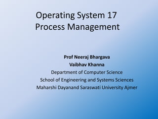 The document discusses the concepts of process management in operating systems, highlighting the importance of multiprogramming and multitasking to efficiently utilize CPU and I/O devices. It defines processes as active entities compared to passive programs and describes various process states such as new, running, waiting, ready, and terminated, along with the role of the process control block (PCB). Additionally, it outlines key activities involved in process management, including creation, synchronization, communication, and handling deadlocks.