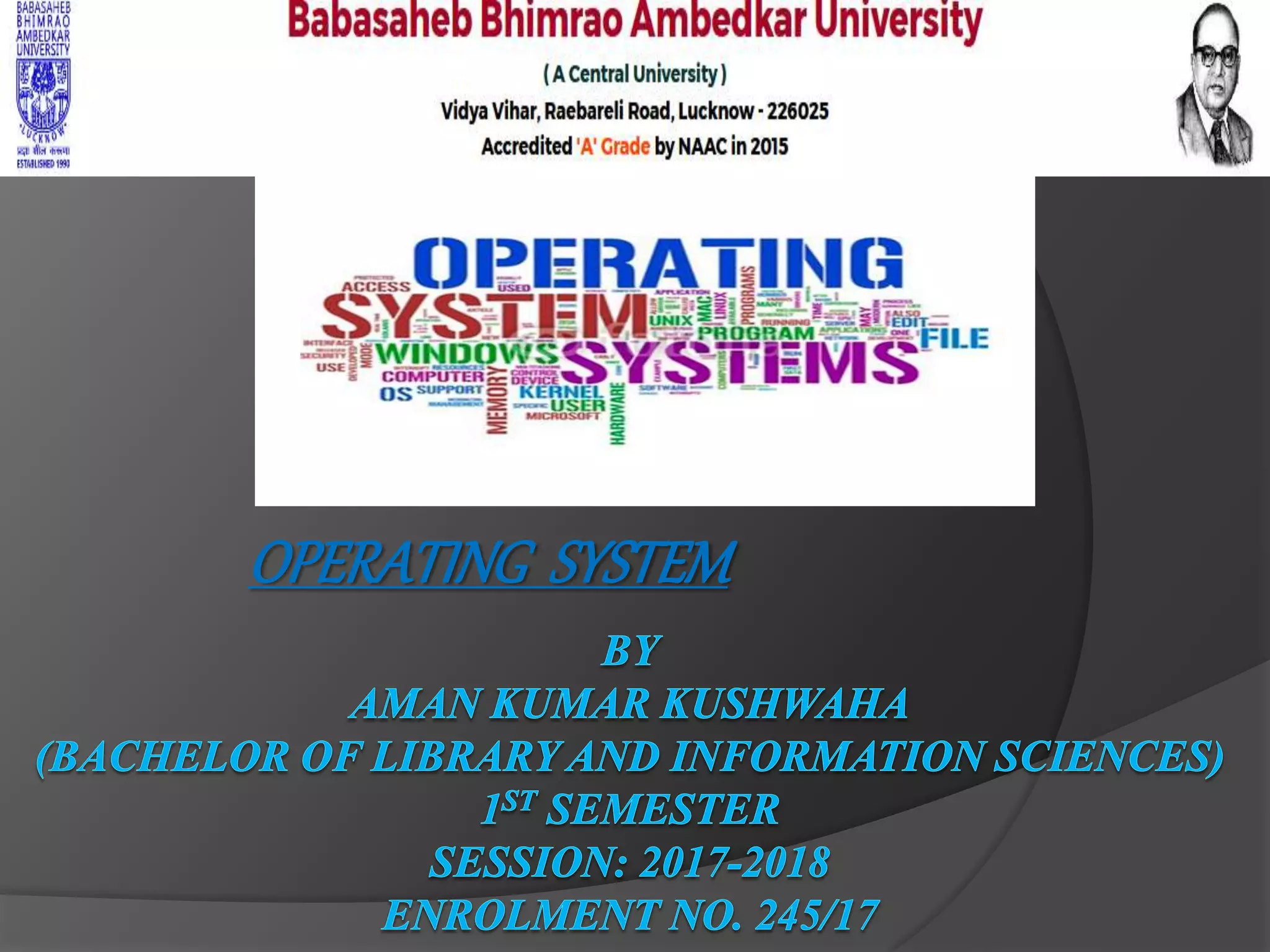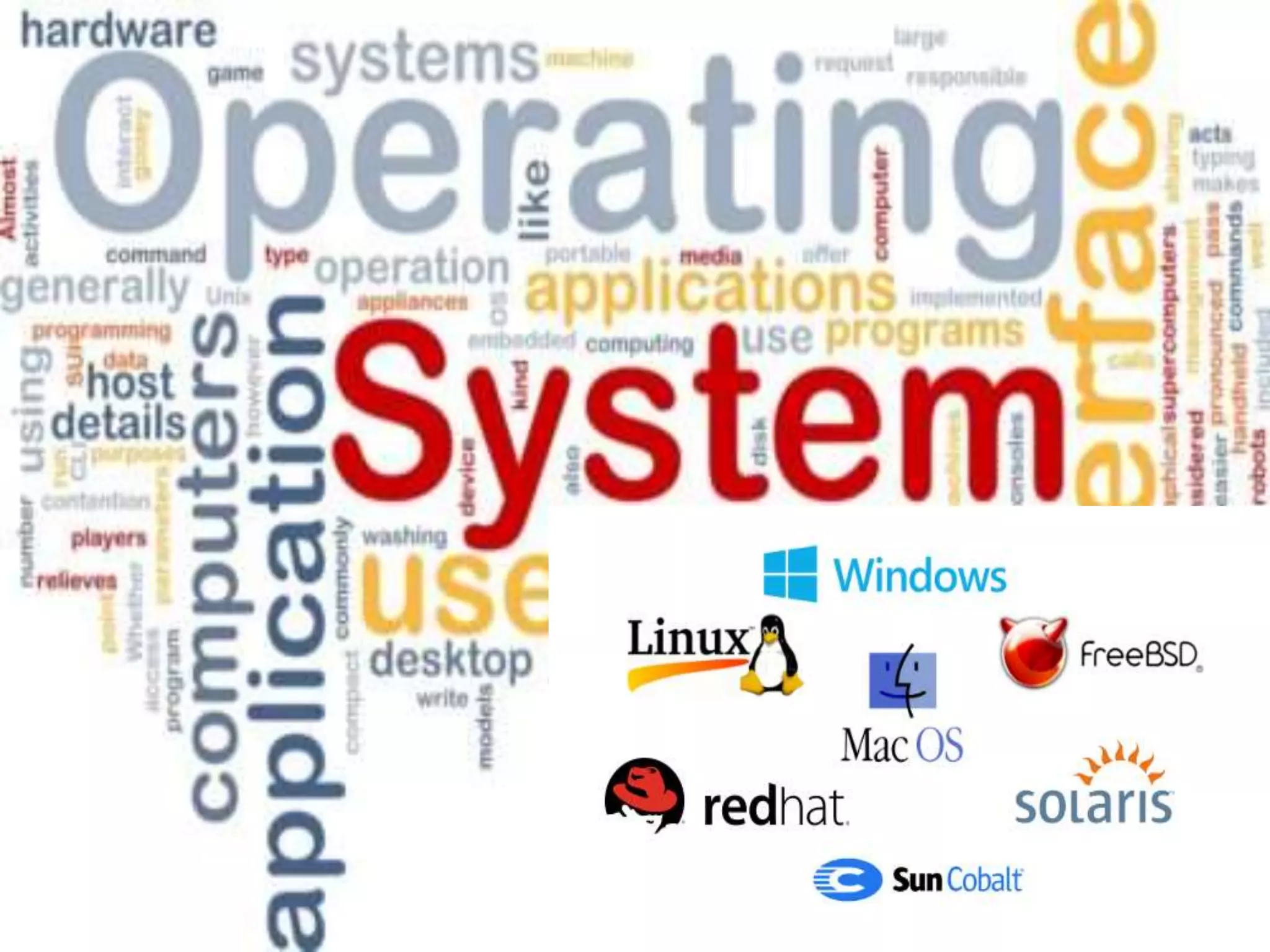 An operating system (OS) is system software that manages computer hardware and software resources and provides common services for computer programs. The OS acts as an intermediary between programs and computer hardware. There are several types of operating systems including single-tasking/multi-tasking, single-user/multi-user, distributed, embedded, real-time, and library operating systems. Popular components of an OS include the kernel, program execution, memory management, virtual memory, multitasking, disk access/file systems, device drivers, networking, security, and user interface. Common operating systems include Windows, MacOS, Android, iOS, and various Linux distributions which dominate different market sectors.