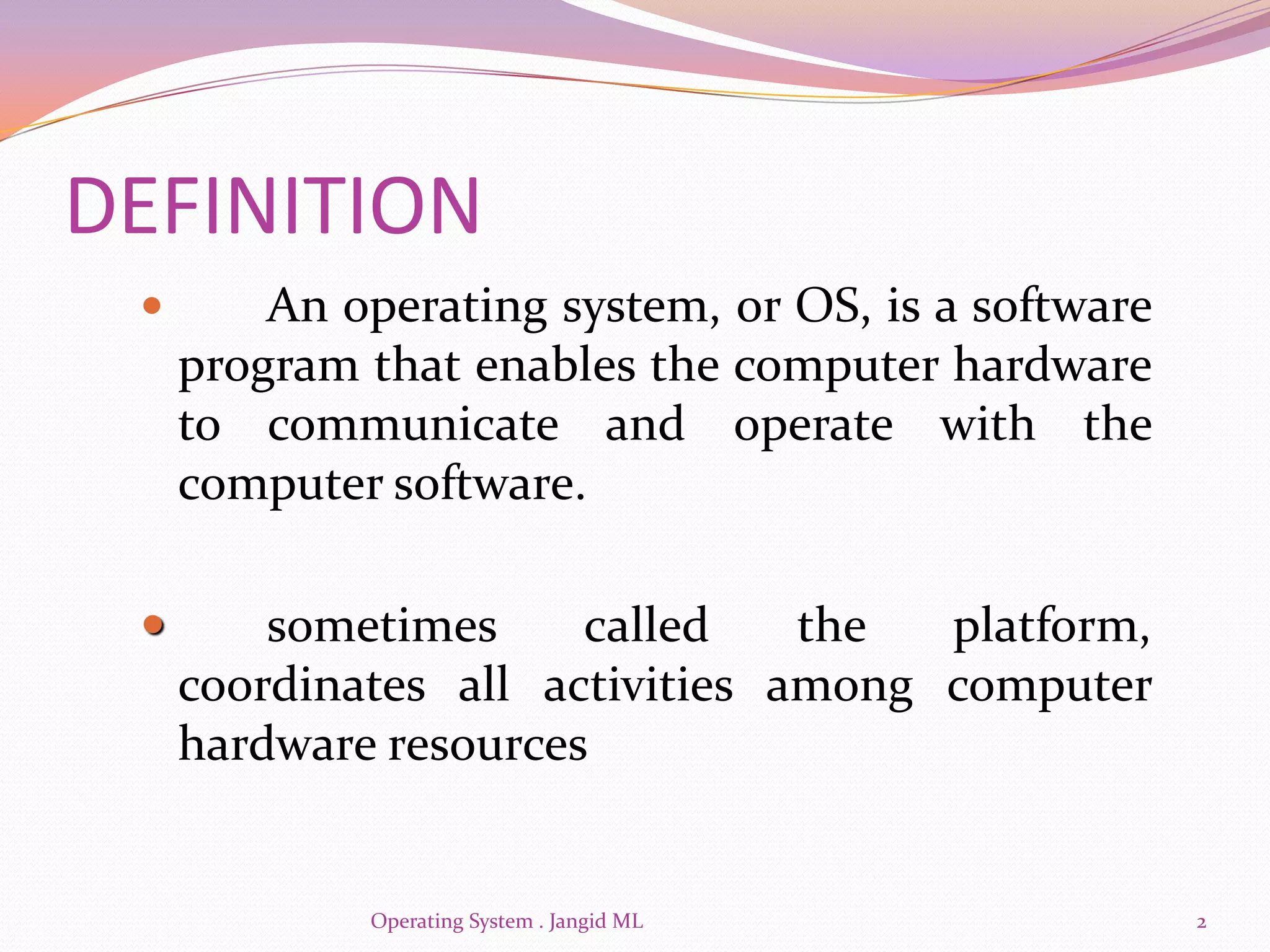 The document discusses operating systems and their functions. It defines an operating system as software that enables computer hardware and software to communicate and operate together. It also coordinates activities among computer resources. The document notes that operating systems provide user interfaces, allow for single/multi-tasking and users, and perform functions like managing memory, scheduling jobs, and administering security. Key functions of operating systems include starting the computer, providing user interfaces, managing programs and memory, and establishing internet connections.