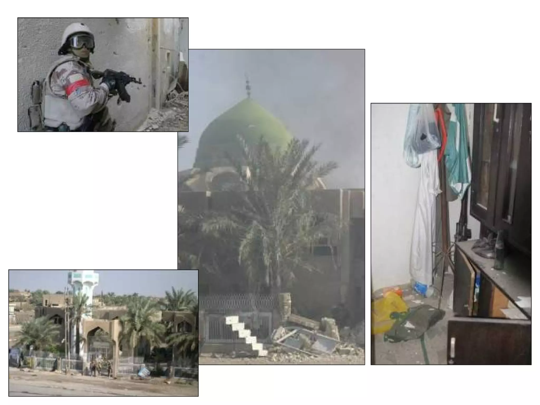 The document summarizes key facts about Operation Al Fajr Roll Up in Fallujah, Iraq in November 2004. It notes that 26 mosques were used as fighting positions or to store weapons and caches, and 3 hospitals were used as fighting positions. It also lists the large number of weapons found stored in mosques and other locations throughout the city, including heavy weapons, explosives, and munitions.