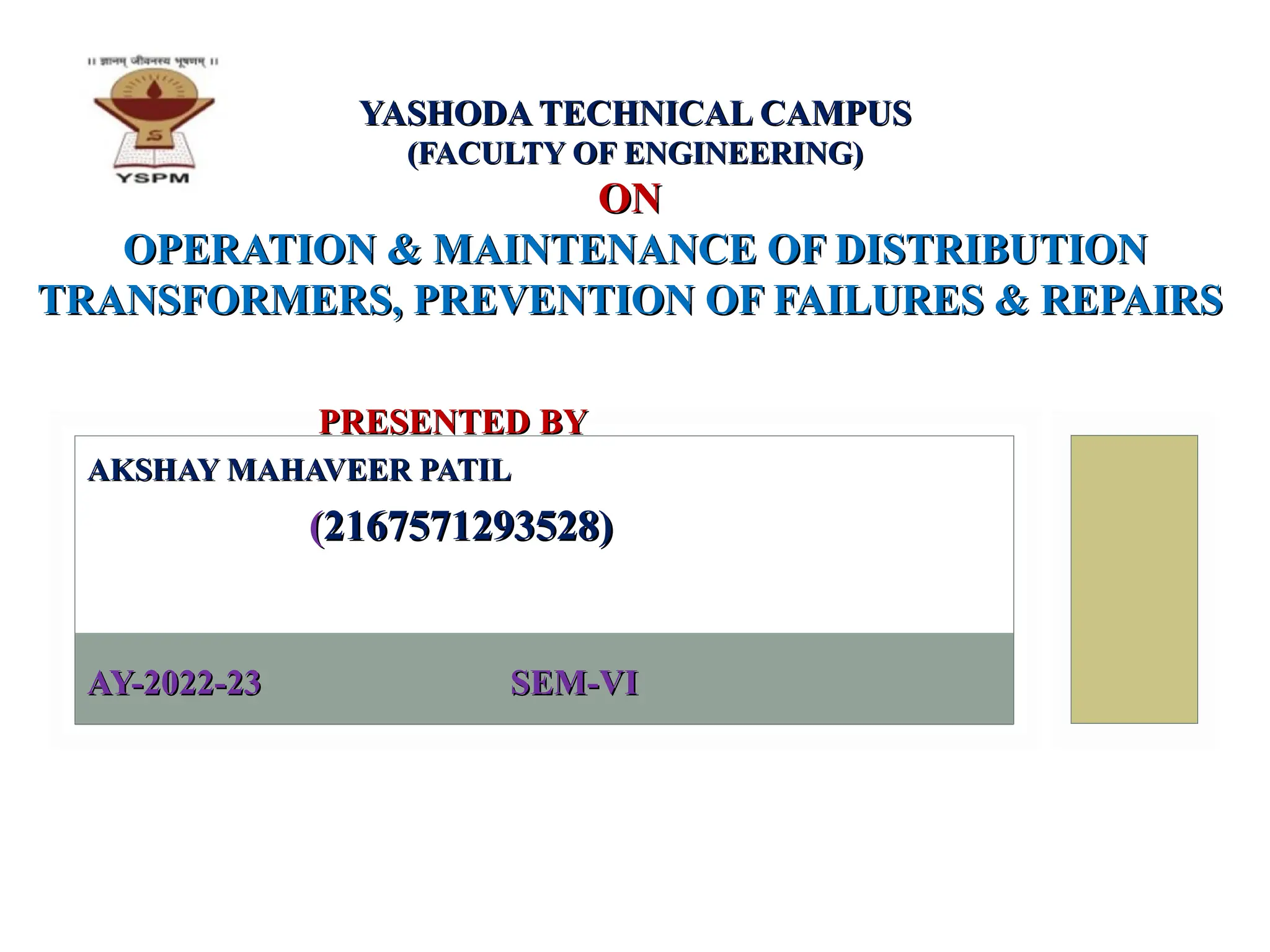 OPERATION AND MAINTAINANCE OF DISTRIBUTION TRANSFORMER AND PREVENTIOMOF FAILURE