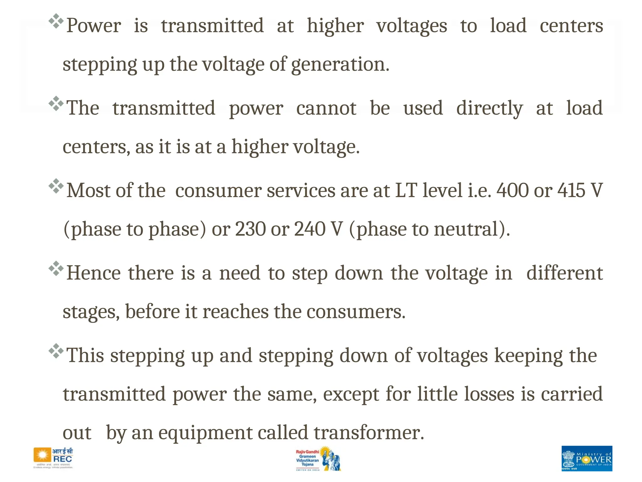 Most of the consumer services are at LT level i.e. 400 or 415 V