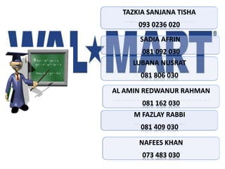 Walmart was founded in 1962 and has grown to include over 8,400 retail units across 15 countries. As the largest private employer worldwide with over 2 million employees, Walmart utilizes various competitive strategies like everyday low pricing and cultural adaptation. Key aspects of Walmart's capacity planning include over 900 million square feet of facilities, $405 billion in annual sales, and a workforce of 2.1 million employees worldwide. The company leverages supply chain management and Just-In-Time practices with over 2,500 suppliers to maintain low prices while meeting customer demand.