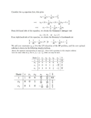 The linear programming problem seeks to minimize the objective function z = x1 + x2 + x3 subject to three constraints. The two-phase simplex method is used to solve the problem. In phase I, an artificial variable is introduced to convert inequality constraints to equations in order to find a feasible solution. Phase I results in x1 entering the basis. In phase II, the original objective function is optimized subject to the constraints, resulting in a maximum value of Z = 6 attained when x1 = 2, x2 = 0.