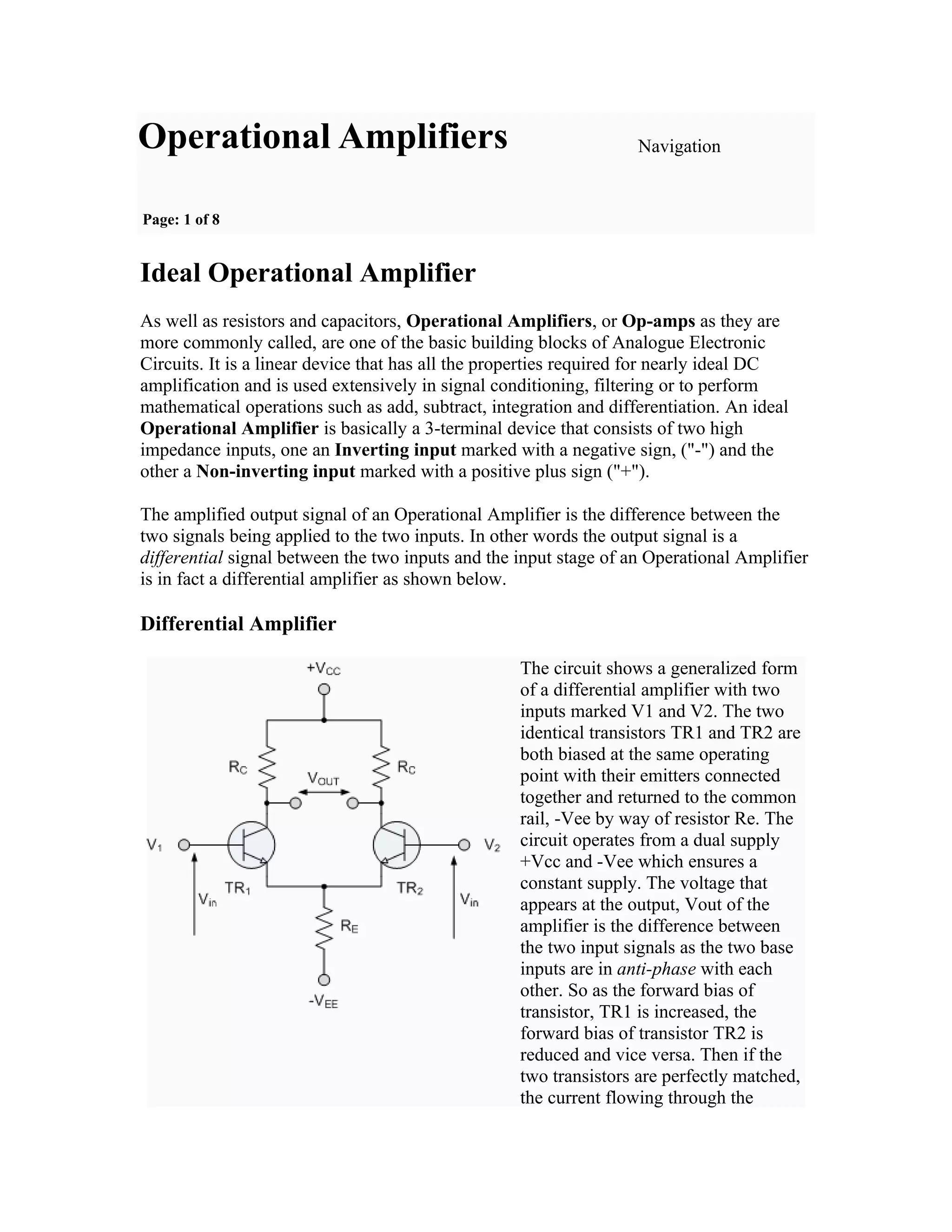 The document discusses ideal operational amplifiers and their characteristics. It describes how an operational amplifier is a differential amplifier that takes the difference between signals at its two inputs and amplifies that difference. An ideal op-amp has infinite voltage gain, infinite input impedance, zero output impedance, infinite bandwidth, and zero offset voltage. However, real op-amps have limitations compared to these ideal characteristics. The document provides examples of calculating gain and bandwidth using typical op-amp specifications. It also briefly mentions some common op-amp applications and types.