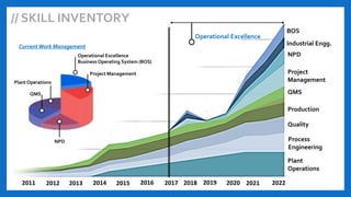 This document provides a summary of Bharat's work experience and qualifications. It outlines his educational background which includes a PGDM/MBA in Operations Management from Prin. L.N.Welingkar Institute of Management Development and Research as well as a Mechanical (Automobile) Engineering diploma. It then details his work experience spanning over 10 years in manufacturing and operational excellence roles within the automobile industry. The document highlights some of Bharat's major achievements and projects in areas like cost reduction, new product development, process improvement, automation, and quality management.