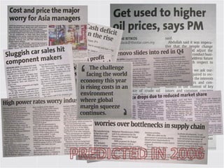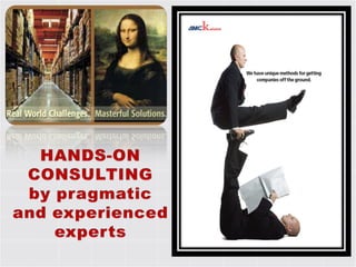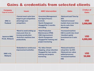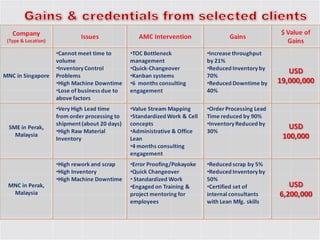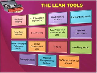 The document discusses operational excellence and cost reduction through Lean and Lean Six Sigma methodologies. It outlines how these methodologies can help companies increase throughput, reduce excess inventory and operating expenses. Specific tools and strategies are mentioned, including value stream mapping, standard work, visual management systems, and kaizen. Case studies are shared of companies that saved millions or billions using these approaches. Consulting services are offered to assess opportunities, identify waste, and provide training and project support.