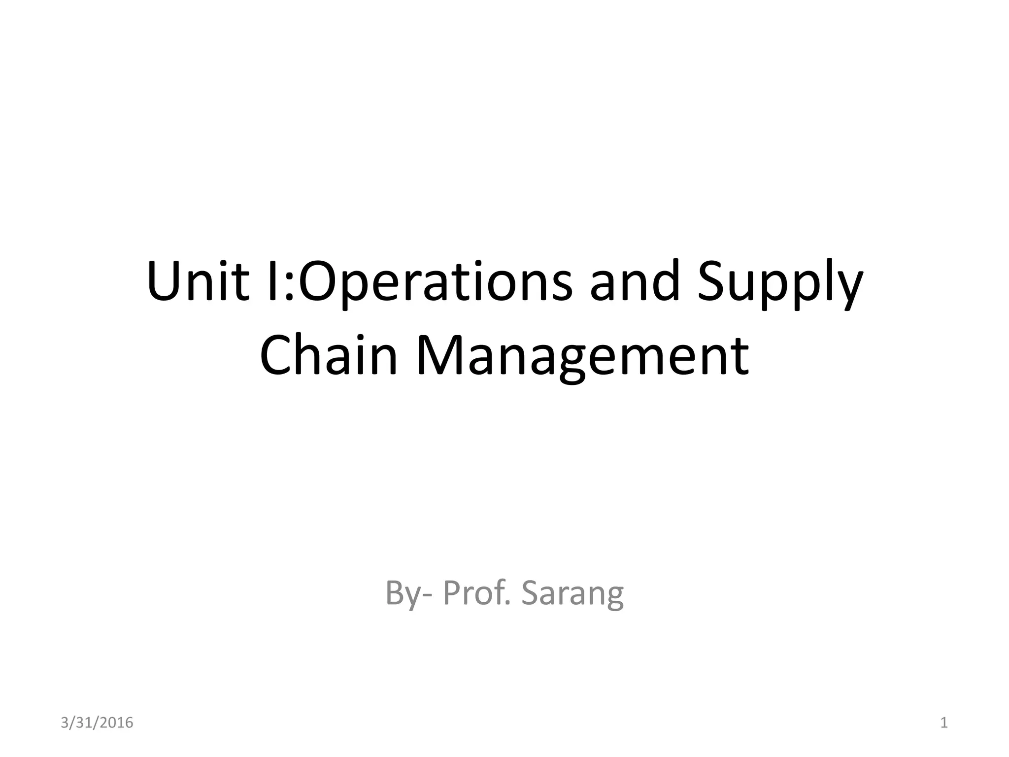The document discusses operations and supply chain management, detailing the significado and scope of operations management, its objectives, significance, and functions. It elaborates on supply chain management (SCM), including its development, objectives, features, and its impact on efficiency and customer service. Key themes include the importance of quality management, total quality management (TQM), facility layout, and the process dynamics involved in transforming inputs into outputs.