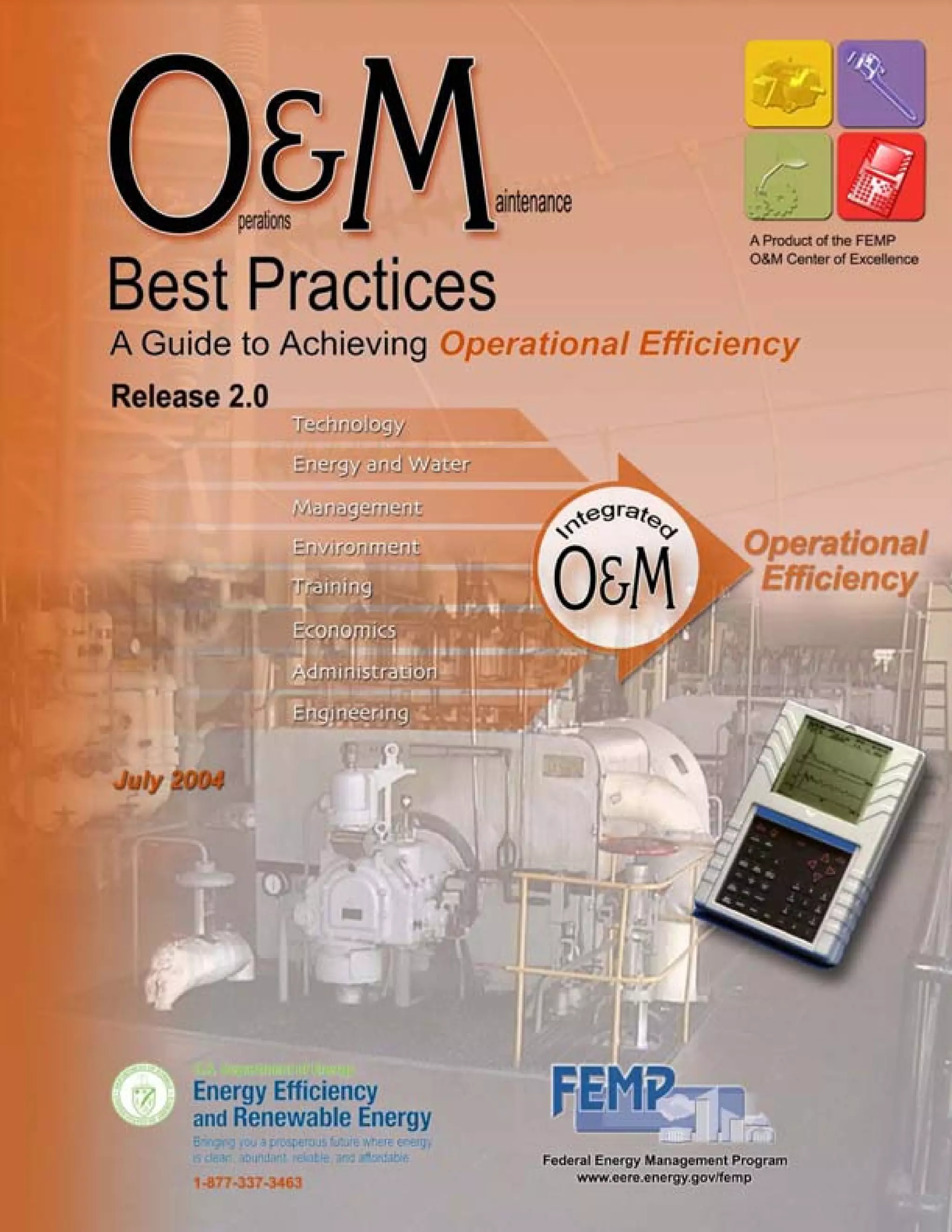 This document is a guide to achieving operational efficiency through best practices in operations and maintenance (O&M). It was prepared by Pacific Northwest National Laboratory for the Federal Energy Management Program. The guide consists of 11 chapters that cover topics such as why O&M is important, O&M management, computerized maintenance management systems, types of maintenance programs, predictive maintenance technologies, commissioning existing buildings, metering for O&M, and O&M ideas for major equipment types. The target audience includes federal O&M and energy managers.