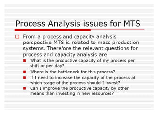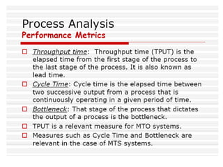 1. Lead time - The time from when a customer places an order to when it is delivered. Reducing lead time is important in make-to-order.