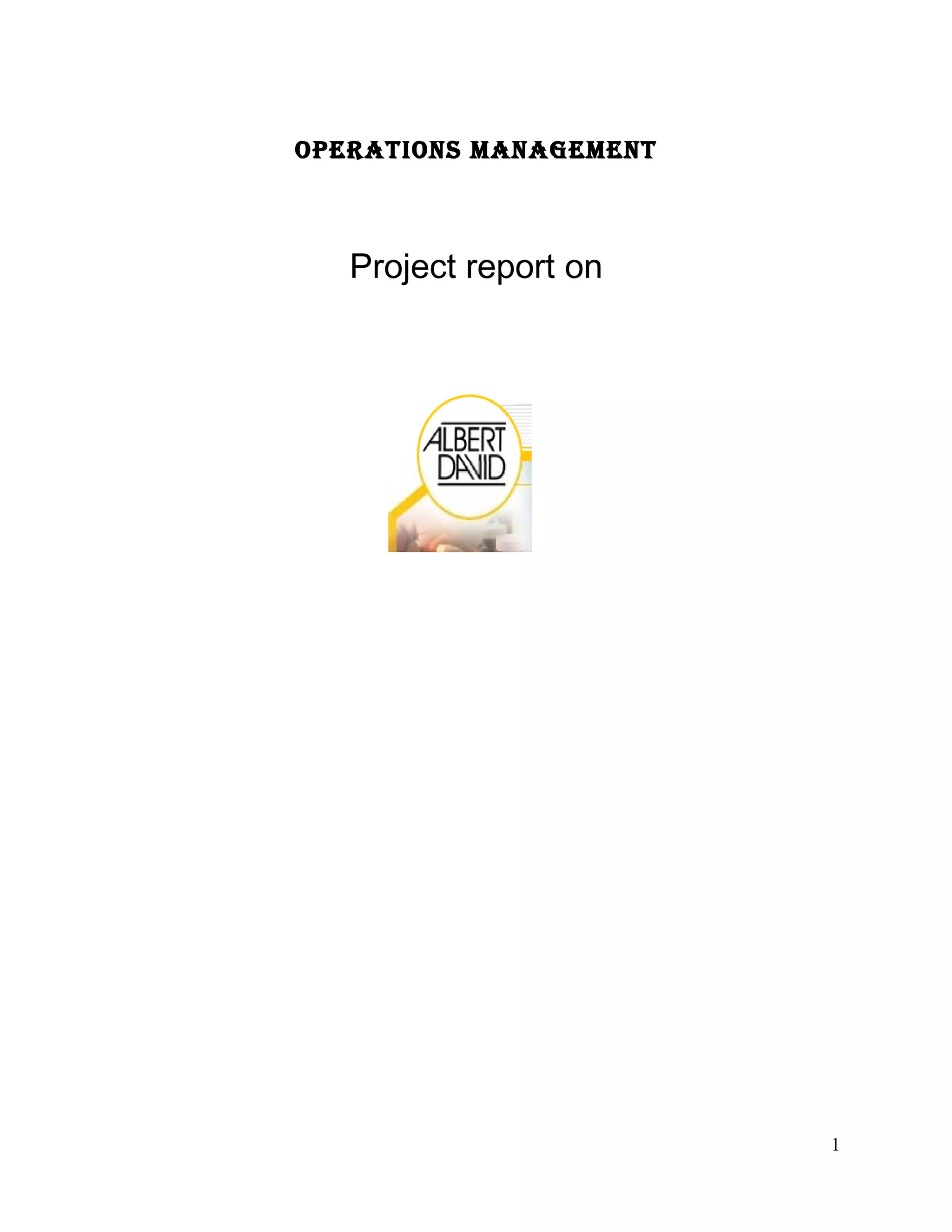 This document provides an overview of operations management at Albert David India's Ghaziabad manufacturing unit. It describes the company background, objectives of the study, existing production processes, quality management practices, and recommendations. The production process involves transferring raw materials into dispensing silos, weighing, mixing, drying, milling, blending, and pressing into tablets. Programmable logic control was recently introduced to increase automation and efficiency across manufacturing operations.