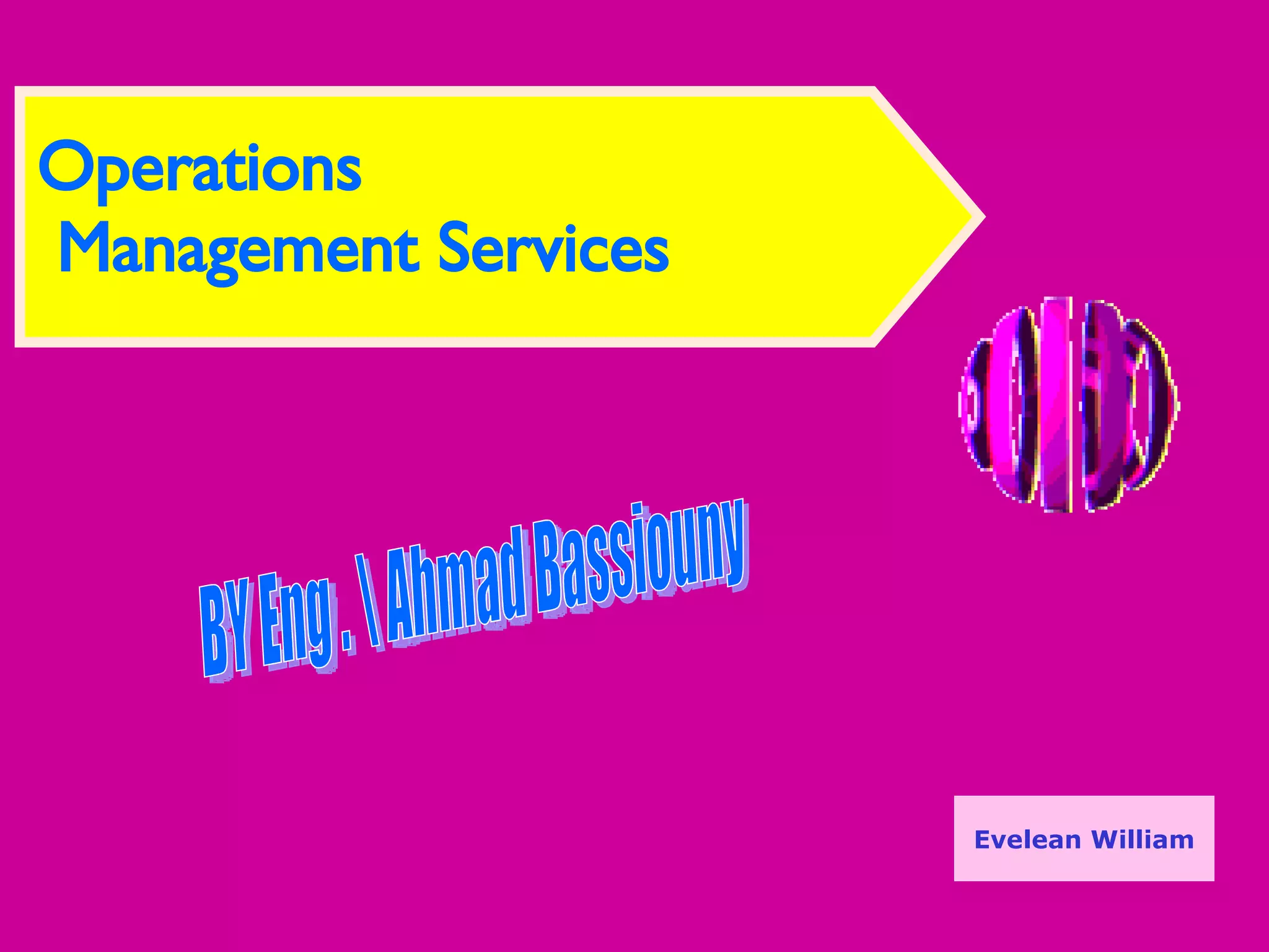The document discusses various operations management services including process analysis, work study, incentive schemes, and plant layout improvement.